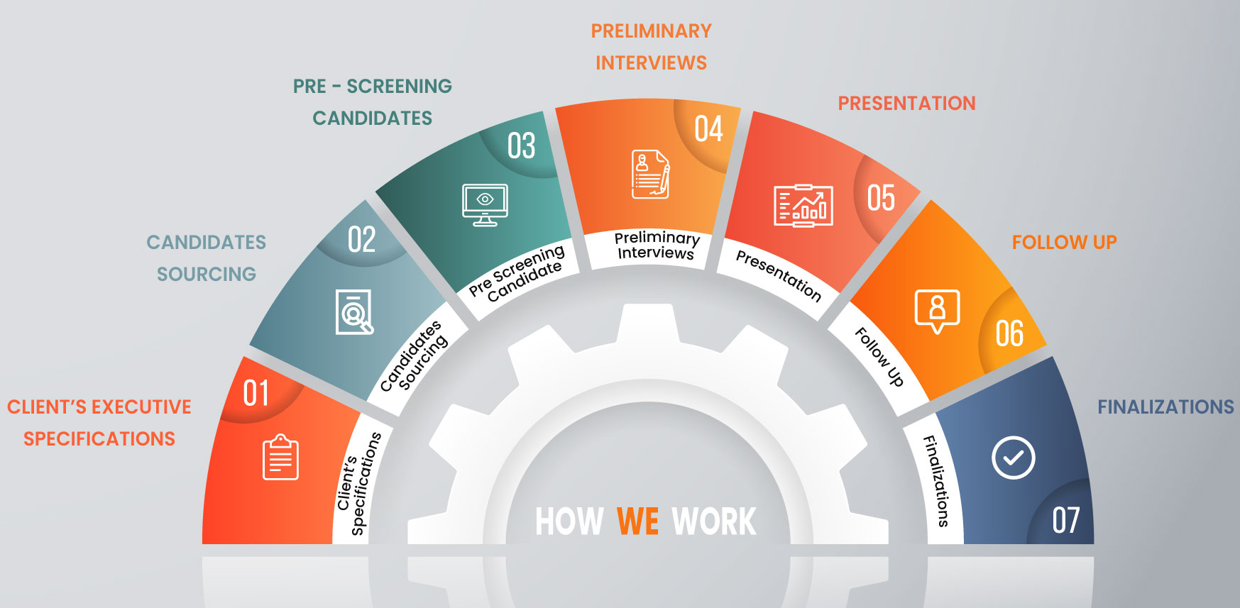 Relying on high-level professional networks, industry knowledge and internal research resources, our creative approach includes competency interviews, questionnaires, personal assessments, references and deep market knowledge.